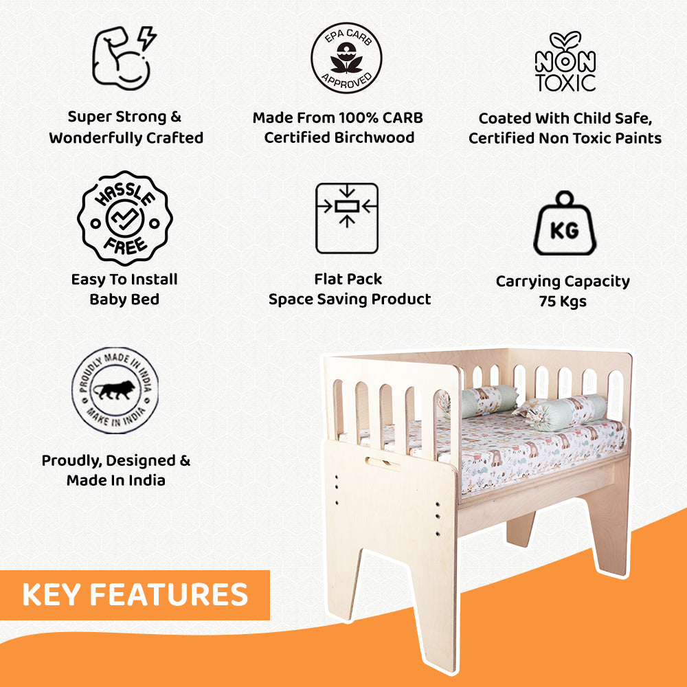 - Co Bed bassinet made from 100% CARB certified Birchwood and non-toxic polish which is safe for the child.