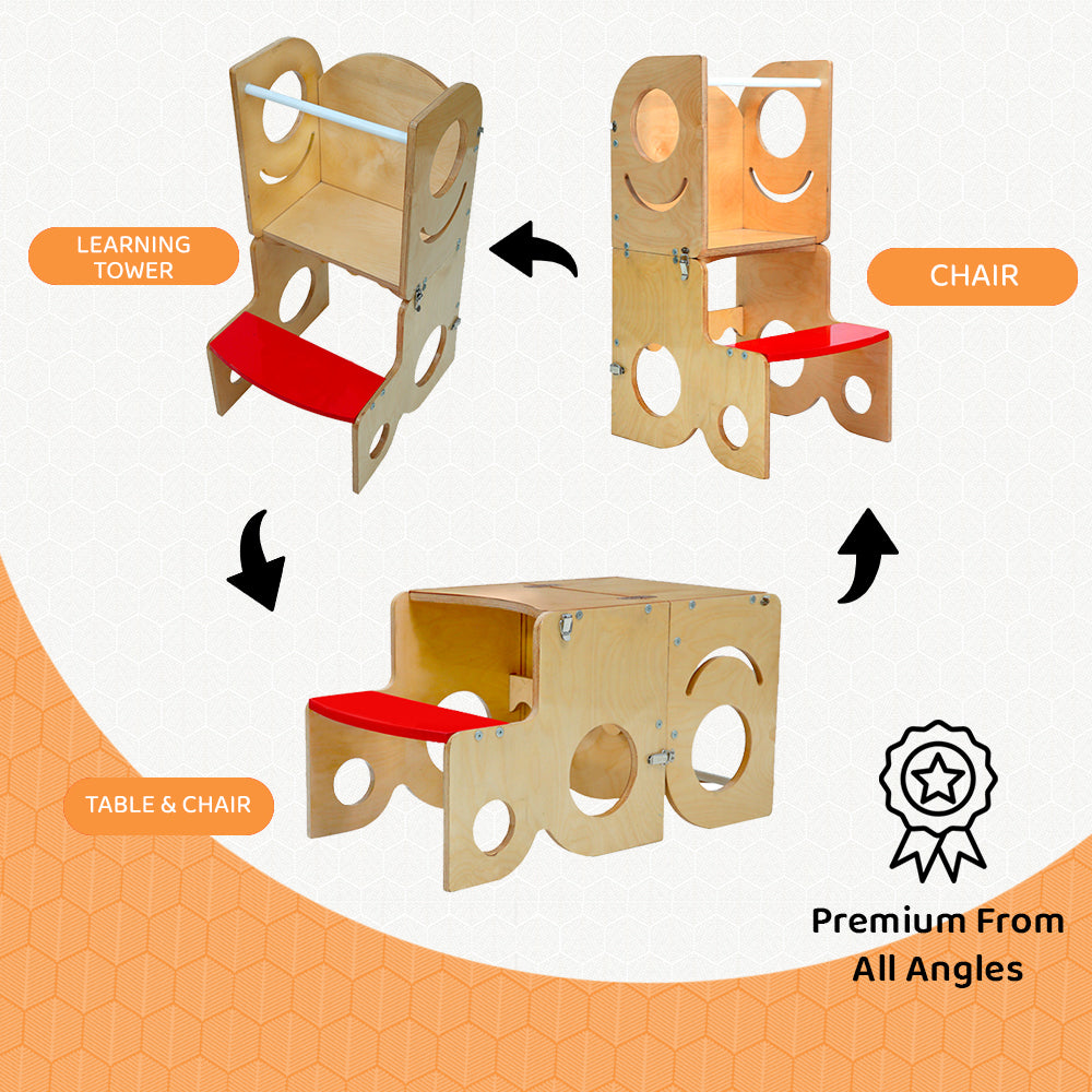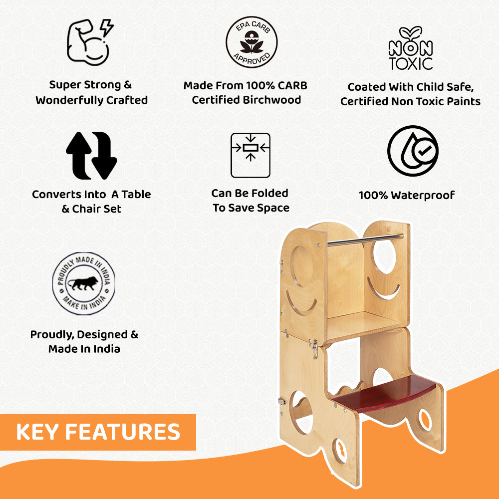 Kiddery Learning Tower Cum Table & Chair Set | Montessori Inspired Furniture