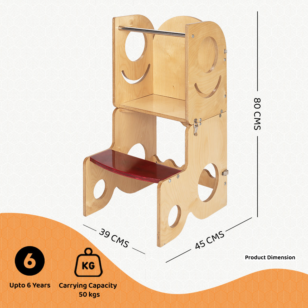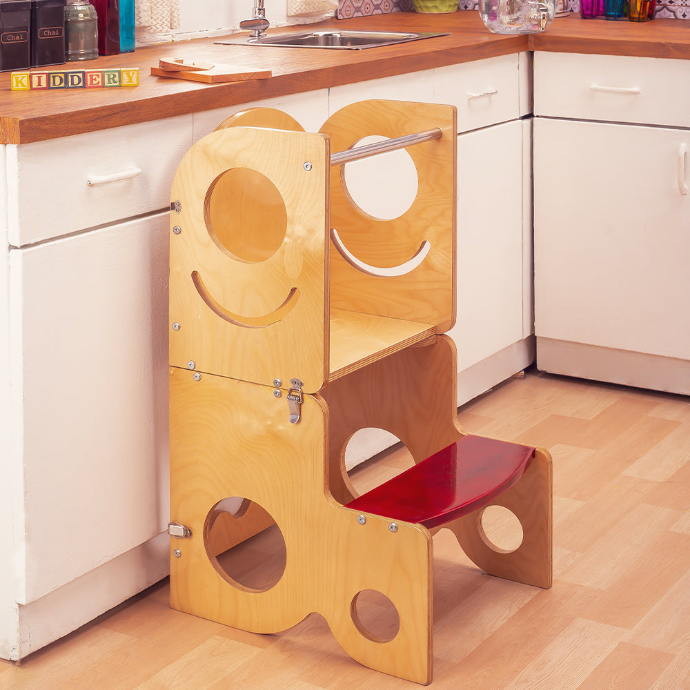 - Use the Learning Tower for many Activities: The kitchen helper can be used for other activities as well. You can get creative with it. Throw a blanket on it and turn it into a tent or have a puppet show. Kiddery Learning Tower goes one step further and provides a convertible Learning tower which can also be used as a table and chair.